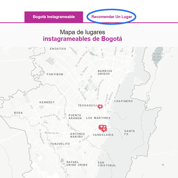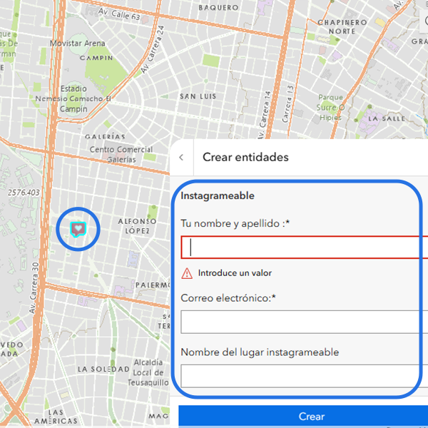 Ubica el (ícono) corazón en el mapa y diligencia la información del formulario.
